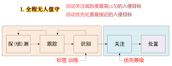 系统使用全自动、无人值守工作方式,可应用于机场净空(鸟击风险预警),或部署在重大活动安保、港口、海防、边防、要塞、军事基地、电厂、化工厂、变电站等重要场所,执行全时、全天候无缝低空和地面监视,防范和处置各类非法入侵的无人机、热气球、航空模具以及地面、海面的人员、移动车辆、船只等。